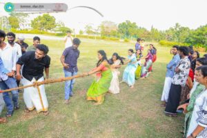 The Department of Commerce joyfully celebrated Thai Pongal on the 28th of January, bringing together students from all four academic years in a vibrant display of unity and tradition. Thai Pongal, a Tamil harvest festival, honors the Sun God for a bountiful harvest and celebrates prosperity. The event featured traditional customs like cooking the ceremonial Pongal dish, symbolizing gratitude and abundance. Following the rituals, students participated in fun games and engaging activities that added color and excitement to the celebration. This lively gathering not only preserved cultural heritage but also strengthened the bonds within our department, making it a memorable and cherished occasion.