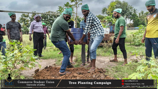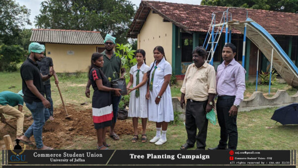 The Tree Planting Campaign was organized by Commerce Students’ Union – University of Jaffna on 21.10.2022 at J/Pandateruppu Girls High School , J/Mathagal St.Joseph Maha Vidyalayam and J/Mathagal Vigneshwara Vidyalayam with the support of Neervely Green Layer association in promoting the eco green concept in student community.